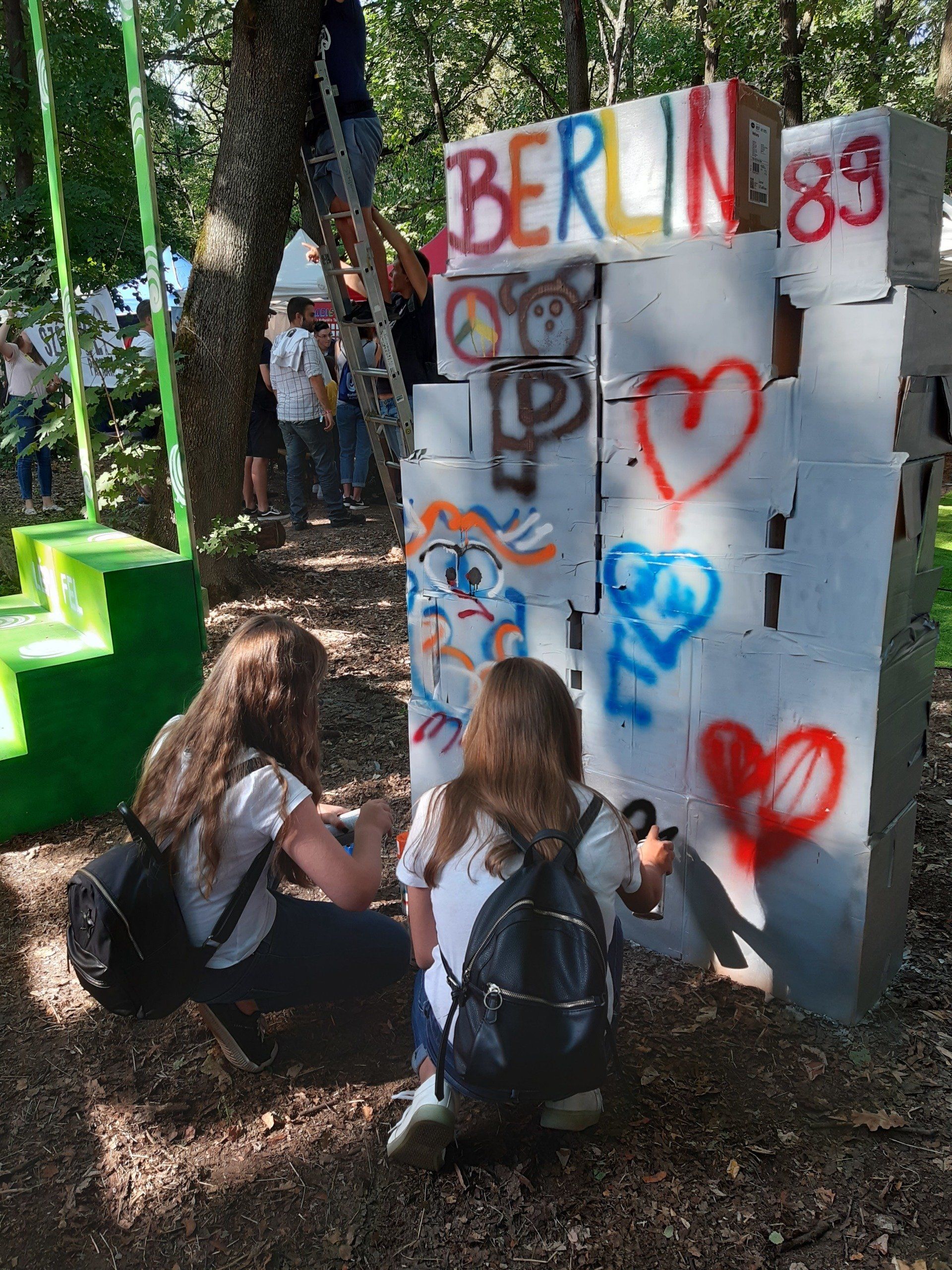 Weiterhin konnten sich die Teilnehmenden auf die Probe stellen, ob sie es schaffen würden, in unserem Mini-Escape Room in 20 Minuten von Ost- nach Westberlin zu fliehen. Darüber hinaus erfreute sich die symbolische „Berliner Mauer“ großen Interesses, welche bemalt werden konnte und am Ende des Festivals zerstört wurde.