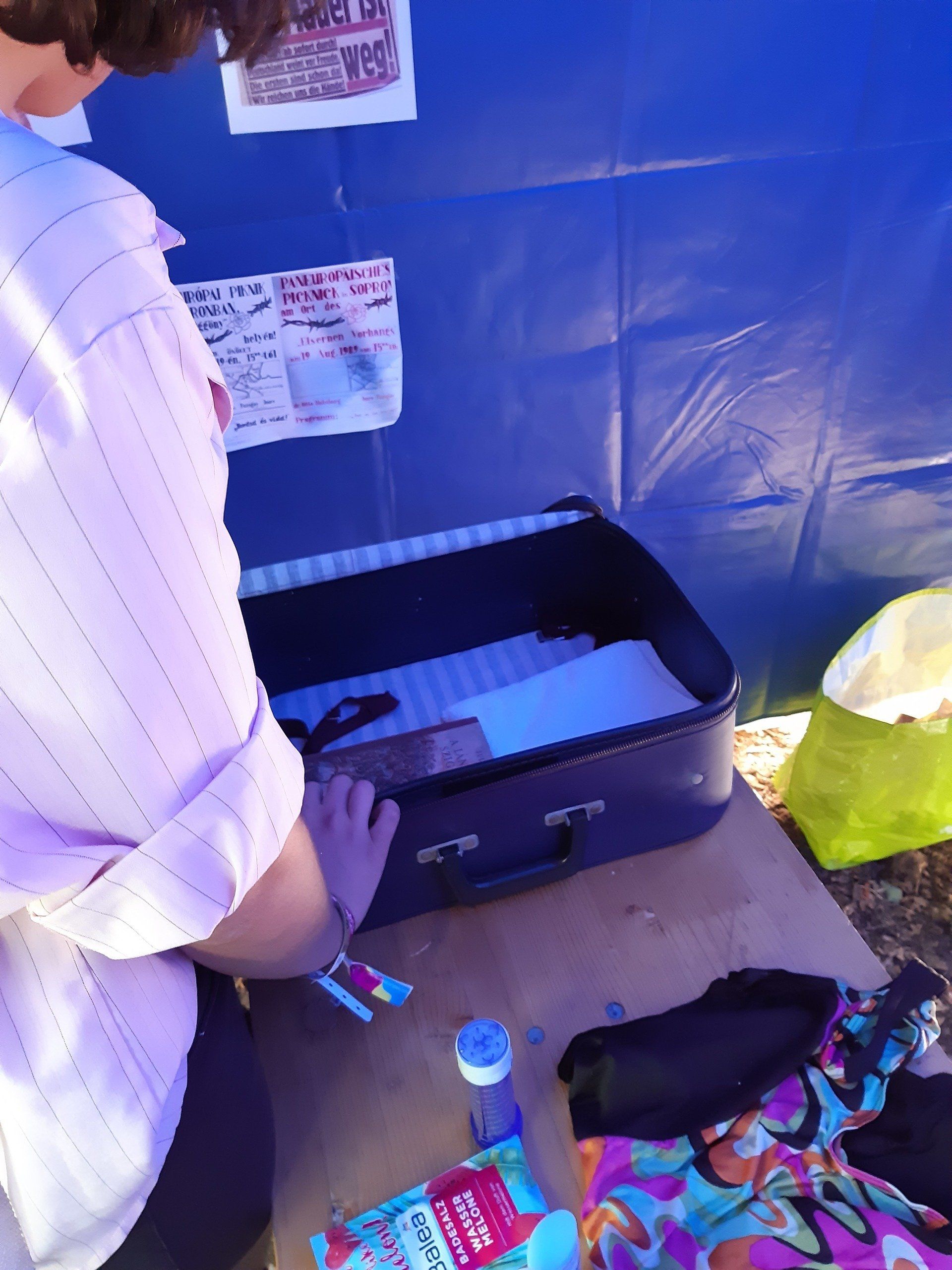 Die Besucher hatten die Möglichkeit, sich in die Rolle eines Flüchtlings zu schlüpfen und entscheiden zu müssen, was sie im Sommer 1989 in ihrem Koffer auf der Flucht mitnehmen würden, ohne dabei bei den Grenzwächtern den Eindruck zu erwecken, dass sie sich gerade auf den Weg in die Freiheit gemacht haben.