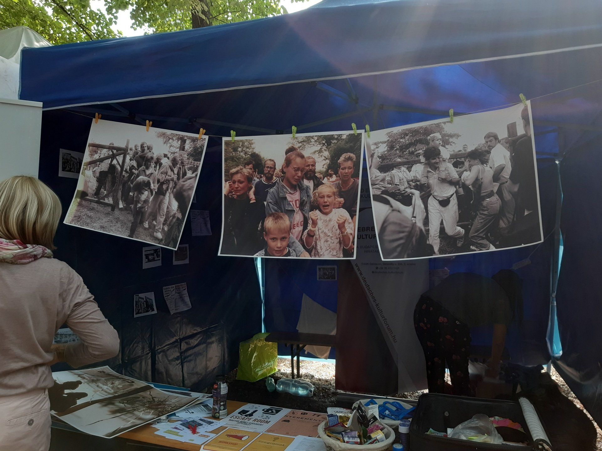 Die gemeinnützigen Organisationen (NGOs) hatten eine eigene Abteilung auf dem Festivalgelände, das sog. „Zivildorf“, wo sie die Interessenten mit unterschiedlichen Aktivitäten erwartet haben. Das Deutsch-Ungarische Jugendwerk hat auch ein komplettes Programmpaket zusammengestellt: Neben Informationsaustausch und Möglichkeit zur Diskussion konnten die Besucher Informationen zu den Schwerpunkten: Wende, 30 Jahre-Grenzöffnung, Paneuropäischen Picknick und dem Mauerfall erhalten und an einem Quiz teilnehmen. Das Jugendwerk hat die Geschichte interaktiv erlebbar gemacht::