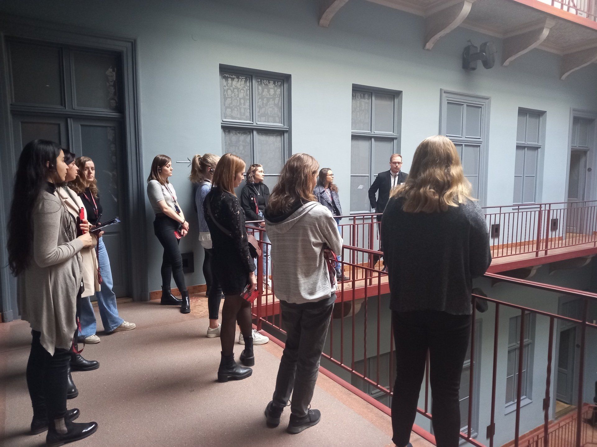 Besonders hervorzuheben war die Fahrt mit dem Aufzug in den Keller des Gebäudes, das für die Gruppe als grausamste Segment des Besuchs wahrgenommen wurde. Zwei Minuten lang war ein Ausschnitt von einem Zeitzeugen zu sehen, der über die damalige Hinrichtungsmethode berichtete. Danach befanden wir uns in Gefängniszellen wieder, wo vor 60 Jahren tagtäglich Folterrungen an den „Feinde“ des Systems angewendet wurde. Entlang der Kellerräume zu laufen und ein Paar Blick auf die Fotoreihen mit Lebensdaten von Gefangenen zu werfen war für die Teilnehmende ein erschütterndes Erlebnis.