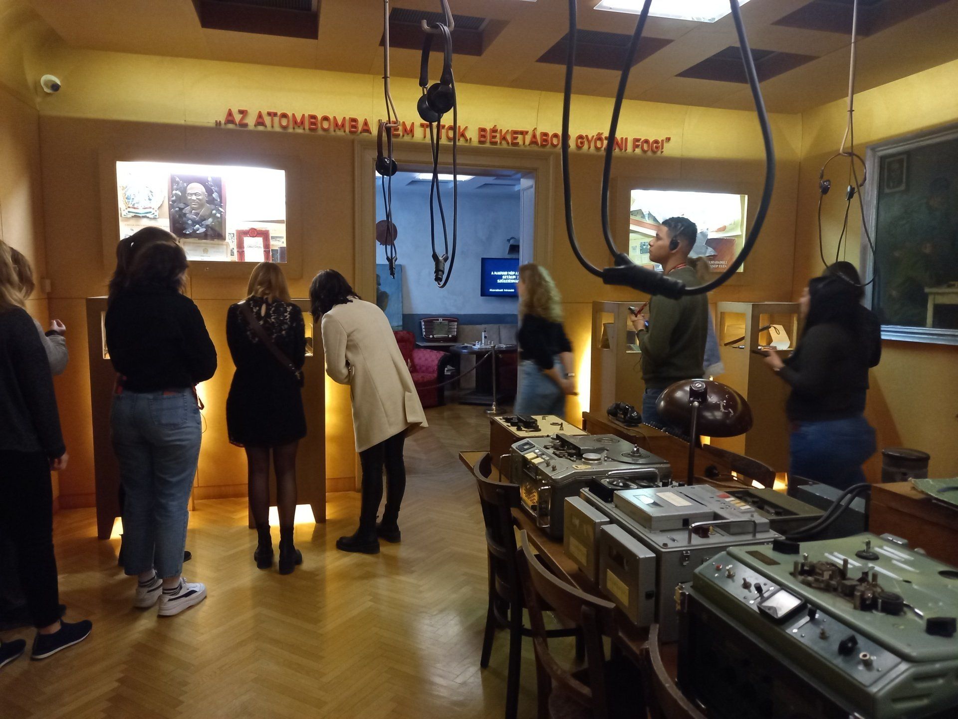 In den letzten Räumen konnten wir uns noch mit den Schicksalen der Emigranten auseinandersetzen, die in dem Monat direkt nach dem Niederschlag des Freiheitskampfes das Land verlassen haben, als die Grenzen kurzfristig geöffnet wurden. Die Gruppe konnte untereinander feststellen, dass die Einzigartigkeit des Besuchs darin bestand, dass fast alle Teilnehmende Geschichten von ihrem Familienkreis erzählen konnte, die in Zusammenhang mit den Informationen der Führung standen. Die Erzählungen unserer Großeltern als Zeitzeugen wurden durch den Besuch besser in neuen historischen Kontext eingebettet und dadurch noch einprägender.