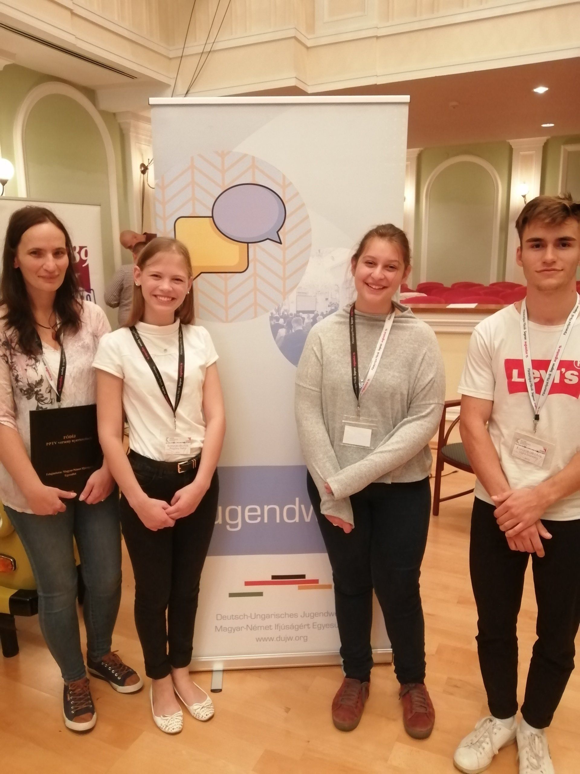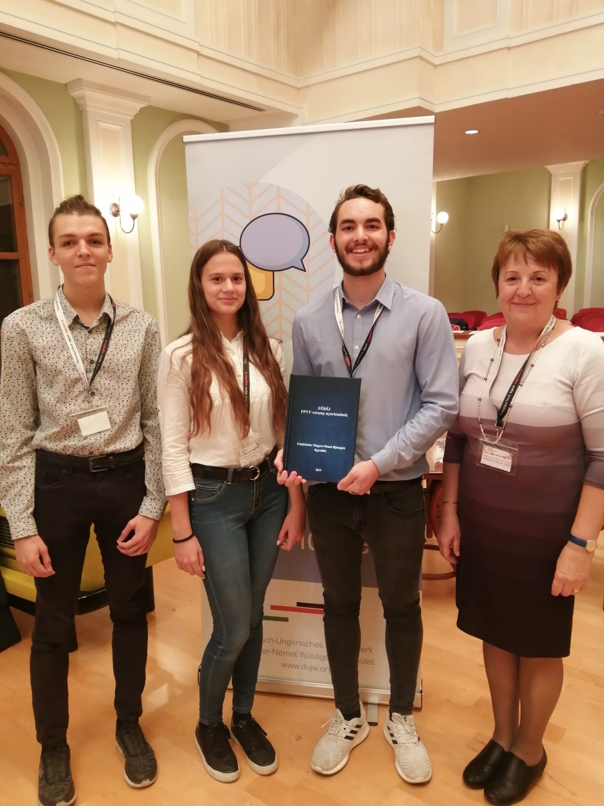 Das Jugendwerk hat den ersten 3 Gewinnerteams als Hauptpreis eine Studienreise nach Berlin angeboten, wo die Gewinnerinnen ud Gewinner das 30. Jubiläum des Mauerfalls zusammen gefeiert haben. Die Schülerinnen und Schüler wurden von dem Botschaftern Dr. Péter Györkös an der Botschaft von Ungarn in Berlin empfangen, wo sie mit ihm einen Dialog geführt haben. Die Schülerinnen und Schüler haben den Botschafter nach dem Werdegang und Tätigkeitsbereich eines Botschafters, nach dem Image der Ungarn in Deutschland, nach aktuellen Tendenzen der deutschen Politik gefragt. Sie hatten auch die Möglichkeit, sich mit dem Zeitzeugen László Nagy über den Hintergrund, die Organisierung, die historische Bedeutung des Paneuropäischen Picknicks zu diskutieren. Darüber hinaus konnten sie die wichtigsten Sehenswürdigkeiten Berlins, wie z.B. Bundestag, Deutscher Dom, Alexanderplatz, Bernauer Starße, East Side Gallery besichtigen und an der Feierlichkeit am Fuße des Brandenburger Tors teilnehmen.